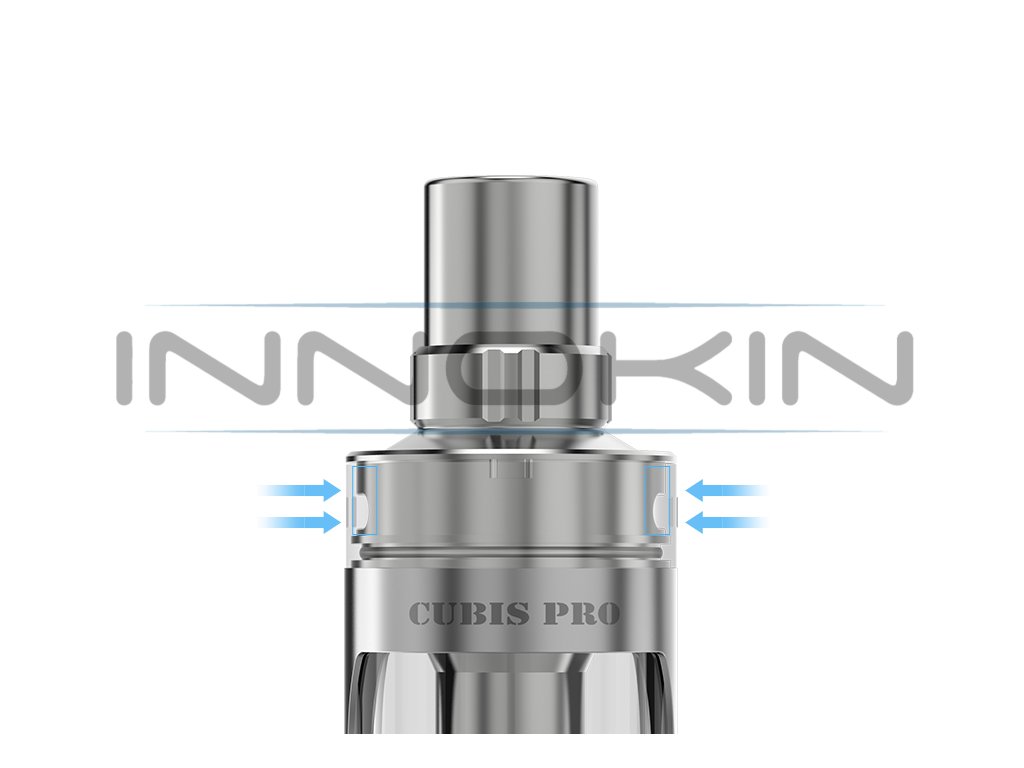 Joyetech eGo Mega Twist+ je propojení veleúspěšného clearomizeru CUBIS Pro a zbrusu nové baterie eGo Mega Twist+ o kapacitě 2300mAh. Ve spodní části baterie se nachází regulační kroužek pro nastavení výkonu (5W-30W) a módu BYPASS - využívá maximální výkon baterie bez ohledu na materiál spirálky = žádné nastavování, lze využít i atomizery pro režim TC. Spínací tlačítko je lehce ovladatelné s barevnou indikací změny režimu. Mezi její další přednosti patří dvojitý ochranný obvod, tj. ochrana proti přebití a podbití. Clearomizer CUBIS Pro je vylepšená verze původního modelu. První novinkou je navýšení objemu nádržky z 3,5ml na 4ml. Je vylepšen systém horního plnění, kde již nemusíte odšroubovávat celou vrchní základnu se žhavící hlavou, ale jen část pod náustkem a liquid plníte jedním ze dvou otvorů. Lze samozřejmě plnit i jako u předchozí verze, kde po odšroubování vrchní části, která obsahuje žhavící hlavu, plníte liquid do samotného těla clearomizeru, kde není již žádný kouřovod, takže v plnění nic nepřekáží a liquid můžete do clearomizeru doslova nalít a nemusíte se spoléhat na tenká kapátka nebo různé plnící lahvičky. Ve vrchní části se nachází i vylepšený přívod vzduchu pro optimální prožitek z vapingu. Celý clearomizer je plně rozebíratelný a vyrobený z nerez oceli a Pyrexu. CUBIS Pro Vás překvapí novými atomizery LVC Clapton (úprava přívodu liquidu ke spirálce) a QCS (snadná výměna bavlny při zachování nerezové trubičky s vyfrézovanými otvory = Notchcoil). Opět se můžeme spolehnout i na atomizery řady BF, BF Clapton = režim VW a BF SS316, který lze využit pro režim nastavování teploty. V balení je přibalen i další náustek, u kterého je vnitřní část spirálovitého tvaru = ochrana proti případnému prskání liquidu do úst.