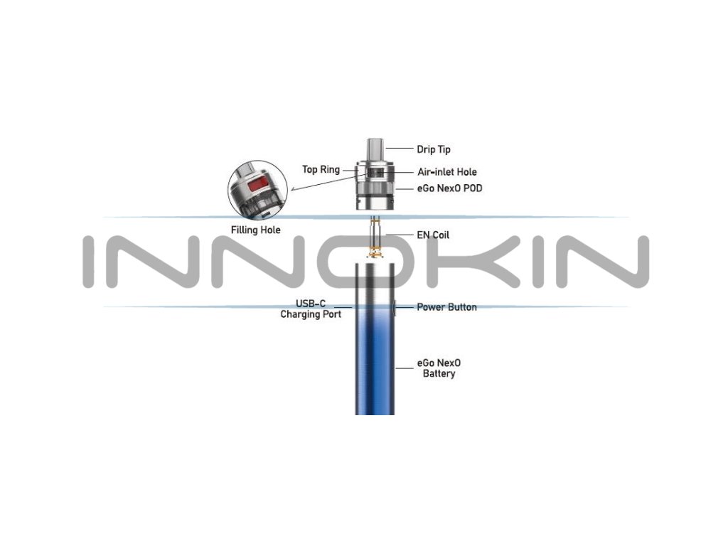 eGo NexO je nová řada elektronických cigaret s POD systémem od společnosti Joyetech, která je vybavena 1500mAh monočlánkem a cartridgí o objemu 2ml s uživatelsky přívětivým 360 stupňovým oknem pro kontrolu stavu liquidu. Zařízení dále disponuje automatickým výkonem až 20W, LED indikátorem stavu nabití baterie, USB-C portem pro rychlé nabití a vyměnitelnými atomizery řady EN.