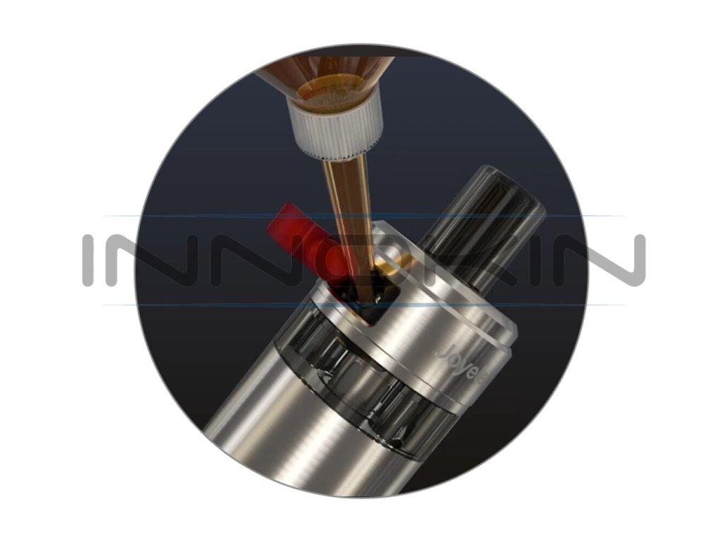 Cartridge ve vrchní části nabídne základní objem 2ml, vystačí si tak na mnohahodinové potahování. V případě potřeby pak stačí jednoduše odklopit záslepku v horní části e-cigarety a kdykoliv si opětovně e-liquid doplnit. Vše zvládnete naprosto čistě a rychle během pár vteřin. Pro plnění navíc nemusíte ani odpojovat cartridge od těla baterie, můžete proto hravě plnit sestavenou e-cigaretu v provozu.
