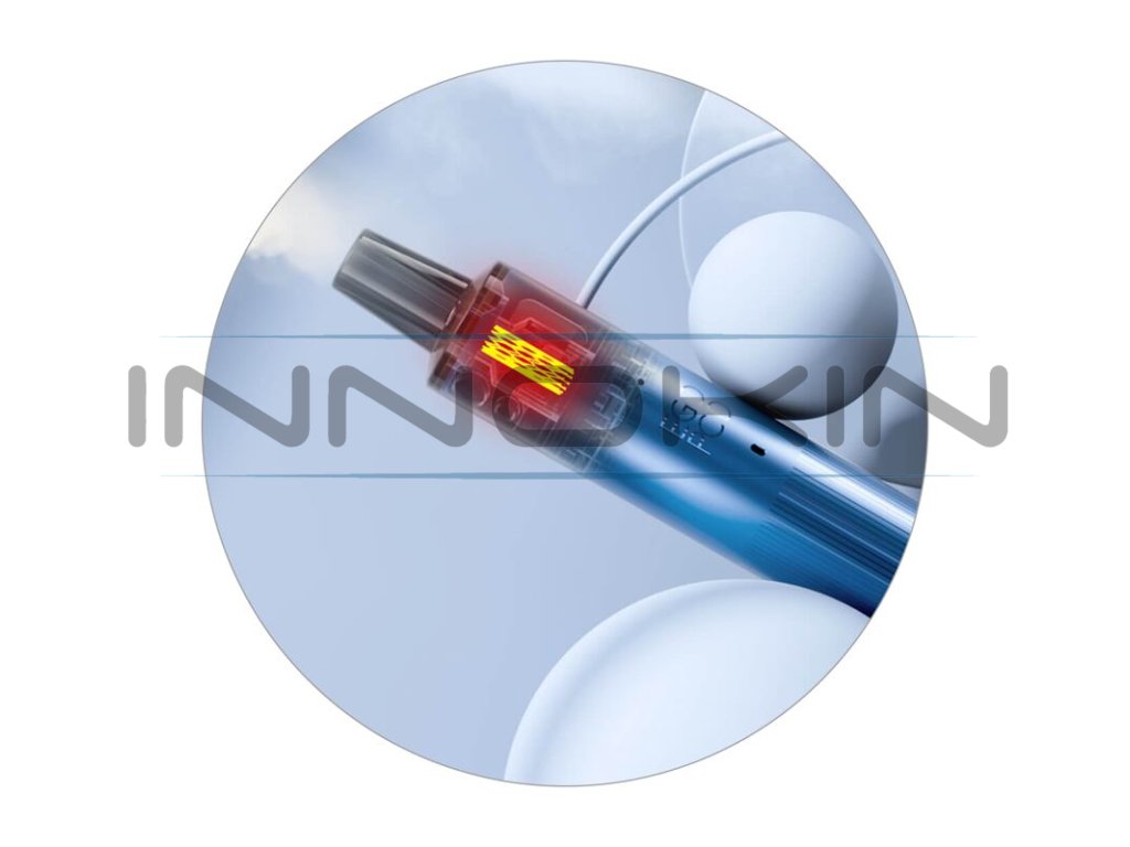 Uvnitř cartridge v základním balení se nachází integrované žhavící tělísko s prvotřídním mesh pletivem pro rychlou odezvu při žhavení, maximalizaci odpařovací plochy a výborné podání chuti. Chuť je perfektně vyvážená a konzistentní i po opakovaných doplňováních cartridge.