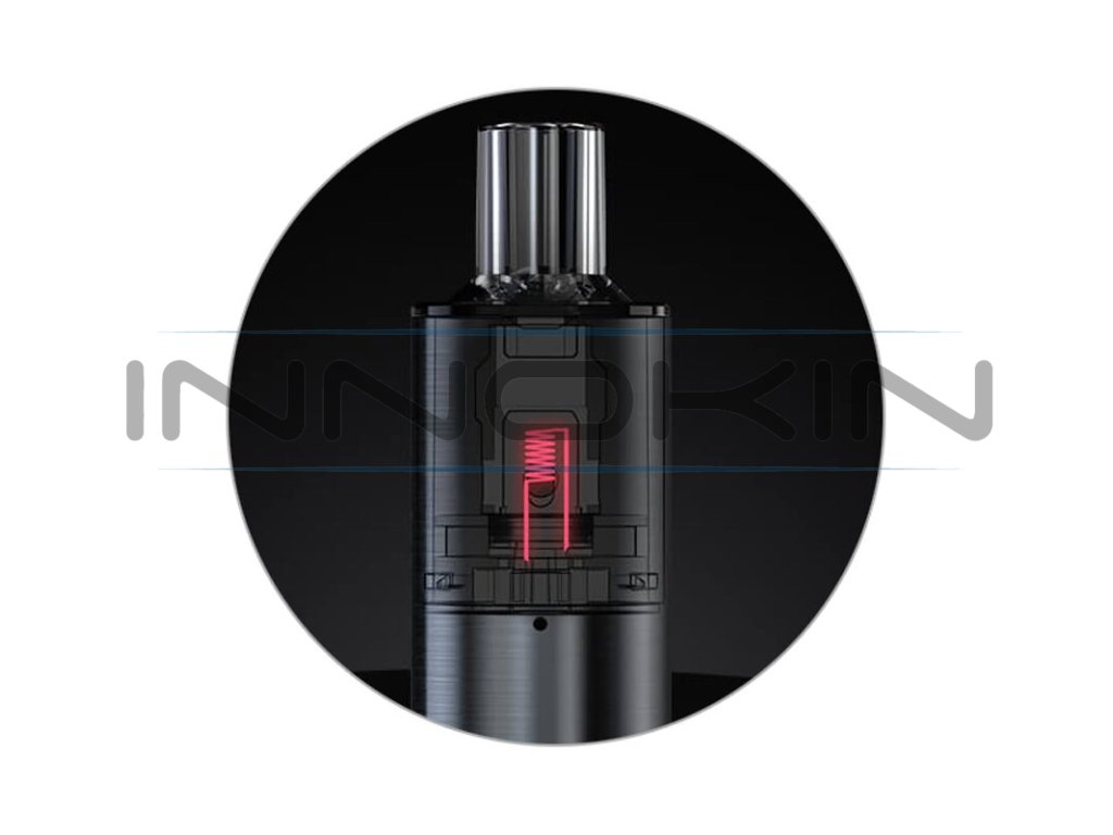 Cartridge ve vrchní části nabídne objem 2 ml a inovativní systém plnění s dětskou pojistkou. Uvnitř této cartridge se nachází integrované žhavící tělísko se spirálkou o odporu 1,2 ohm. Cartridge je navržena pro zisk co nejlepší možné chuti. Je možné ji používat jak se standardními nikotinovými a beznikotinovými náplněmi, tak také s e-liquidy s nikotinovou solí.