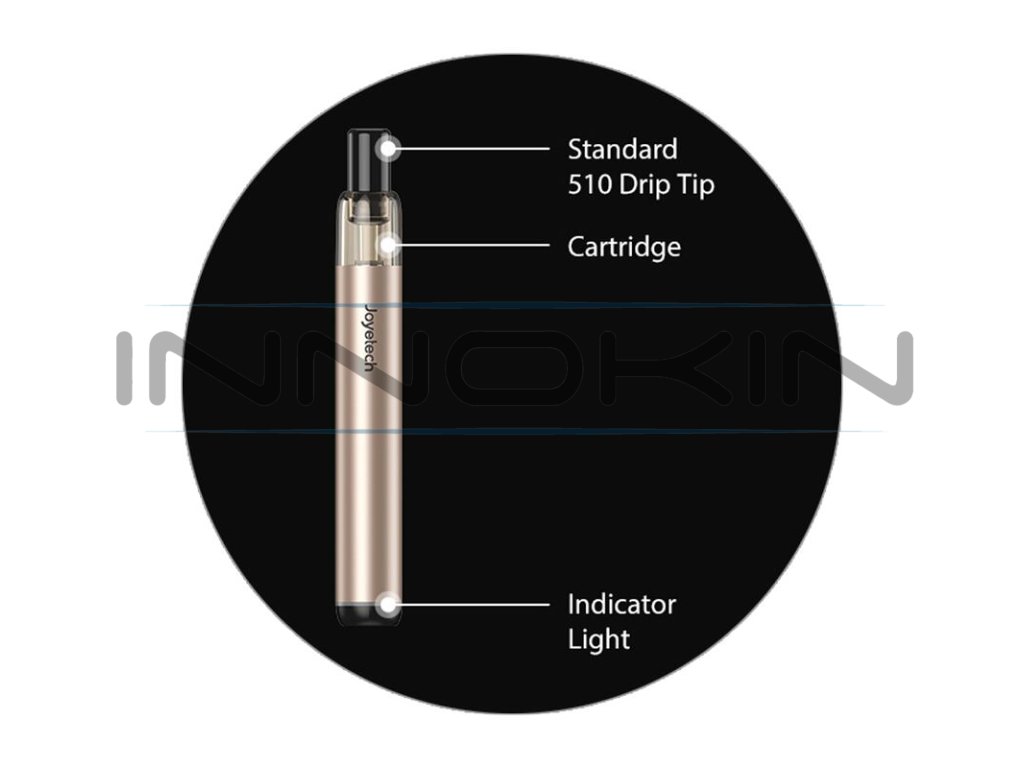 V případě nutnosti dobití pak jednoduše staří připojit USB-C kabel k portu ve spodní části a baterii si můžete kdykoliv opětovně dobít. E-cigareta podporuje nabíjení proudem až 1A. Elektronická cigareta Joyetech eRoll Slim láká také na jednoduché používání a plně automatický provoz. Sepnutí žhavení probíhá automaticky po potažení z náustku, u e-cigarety není potřeba cokoliv nastavovat, potřebné parametry si rovněž nastaví automaticky. Ve vrchní části se potom nachází cartridge s objemem 2 ml a integrovanou žhavící hlavou s odporem 1,0 ohm pro perfektní MTL požitek z vapování. Výhodou cartridge je možnost výměny náustku, v balení se nachází hned dva náustky s uchycením typu 510, hravě ji navíc můžete osadit libovolným náustkem se stejným typem uchycení. Model Joyetech eRoll Slim Easy Kit ocení zejména naprostí začátečníci, nebo nenároční uživatelé, kteří se poohlíží po praktické a kompaktní MTL e-cigaretě.