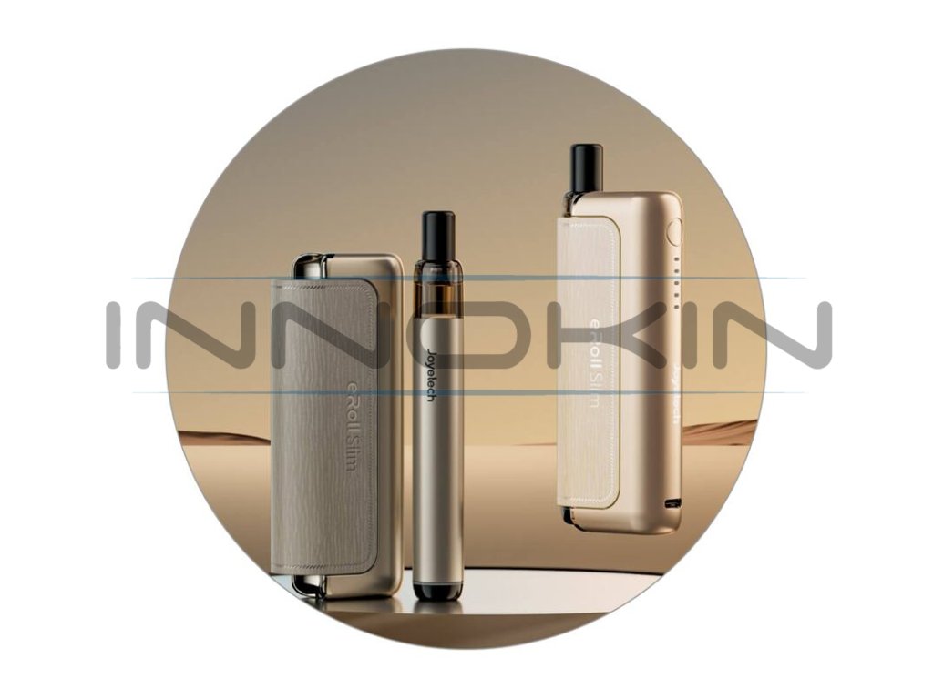 Praktickou sadu jednoduché MTL e-cigarety a dobíjecího pouzdra představuje výrobce Joyetech. Elektronická cigareta Joyetech eRoll Slim PCC Kit se pyšní nejen kompaktními rozměry, ale také originálním zpracováním a krásným designovým provedením, se kterým se budete vyjímat i ve společnosti. Přináší elegantní spojení kompaktní trubkové e-cigarety a stylového pouzdra s vestavěnou baterií pro rozšíření kapacity baterie samotné e-cigarety a pro pohodlné dobíjení na cestách. Samotná e-cigarety eRoll Slim nabídne kompaktní rozměry s délkou 120 mm a průměrem pouhých 16 mm. V jejím jádru se nachází integrovaná baterie s kapacitou 480 mAh a podporou dvou metod nabíjení. Boční část je opatřena magnetickým kontaktem pro nabíjení pomocí pouzdra. Ve spodní části však najdete také tradiční USB-C port pro snadné dobití e-cigarety pomocí USB-C kabelu.