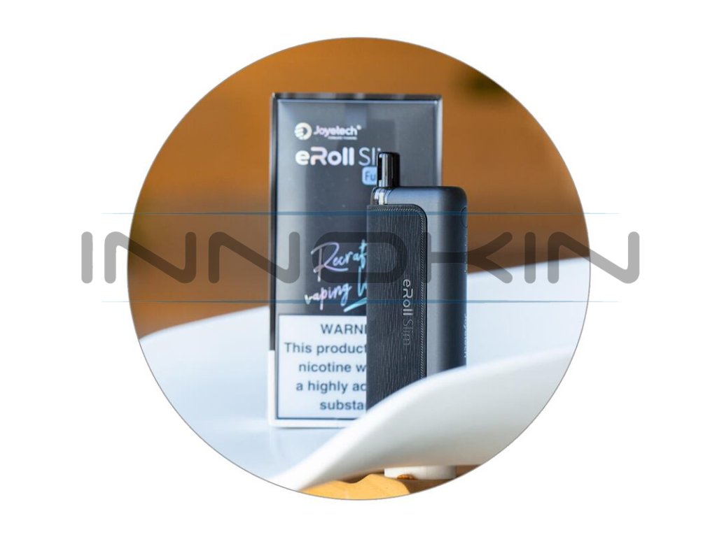 Elektronická cigareta Joyetech eRoll Slim ve variantě PCC Kit nabídne vše potřebné pro dlouhé hodiny vapování. Sadu tvoří praktické dobíjecí pouzdro s vestavěnou baterií pro pohodlné dobíjení e-cigarety a samotná e-cigareta eRoll Slim s kompaktními rozměry 120 x 16 mm. V balení najdete také dva praktické náustky pro cartridge, aby byl váš požitek z klasického šlukování ještě lepší. Můžete si tak zvolit tradiční typ MTL náustku, nebo využít plochý náustek pro ještě utaženější potah.