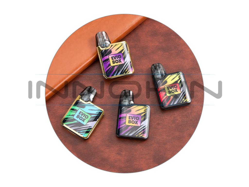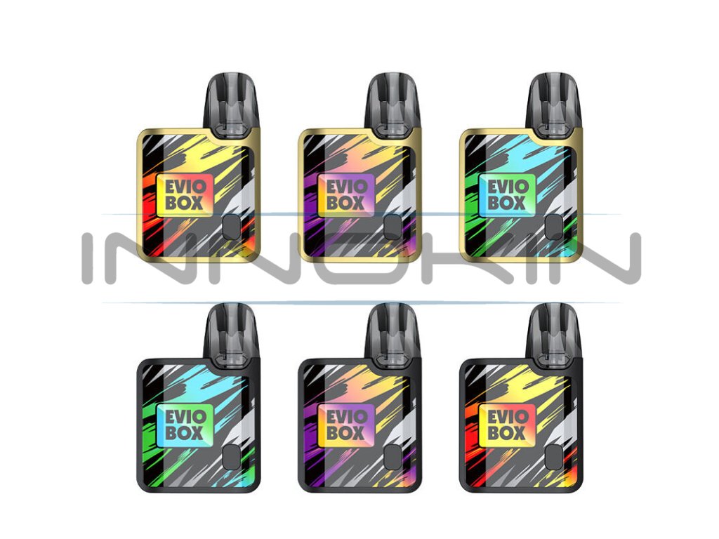 Joyetech EVIO Box Pod Kit je novým přírůstkem do rodiny zařízení EVIO od výrobce Joyetech. Přichází s kompaktním zpracováním, hned dvěma odlišnými konstrukcemi a řadou výhod v čele s prvotřídním čipem s technologií AST. Nesmí chybět také vynikající podání chuti, nebo třeba dvě metody spínání potahu. Joyetech EVIO Box Pod Kit v sobě ukrývá mnohem víc, než se může na první pohled zdát. Celé tělo disponuje rozměry jen 75 x 49 x 14 mm. E-cigaretu proto snadno schováte do kapsy a můžete si ji vzít kamkoliv s sebou. K dispozici je ve verzi ze zinkové slitiny s hmotností 80 g, nebo ve verzi z polykarbonátu s váhou pouhých 41,5 g. Uvnitř těla se nachází integrovaná baterie s kapacitou 1000 mAh, která se postará při běžném provozu až o celodenní výdrž. V případě potřeby je pak možné baterii rychle dobít. Při dobíjení proudem 2 A se zvládne dobít již za 30 minut.
