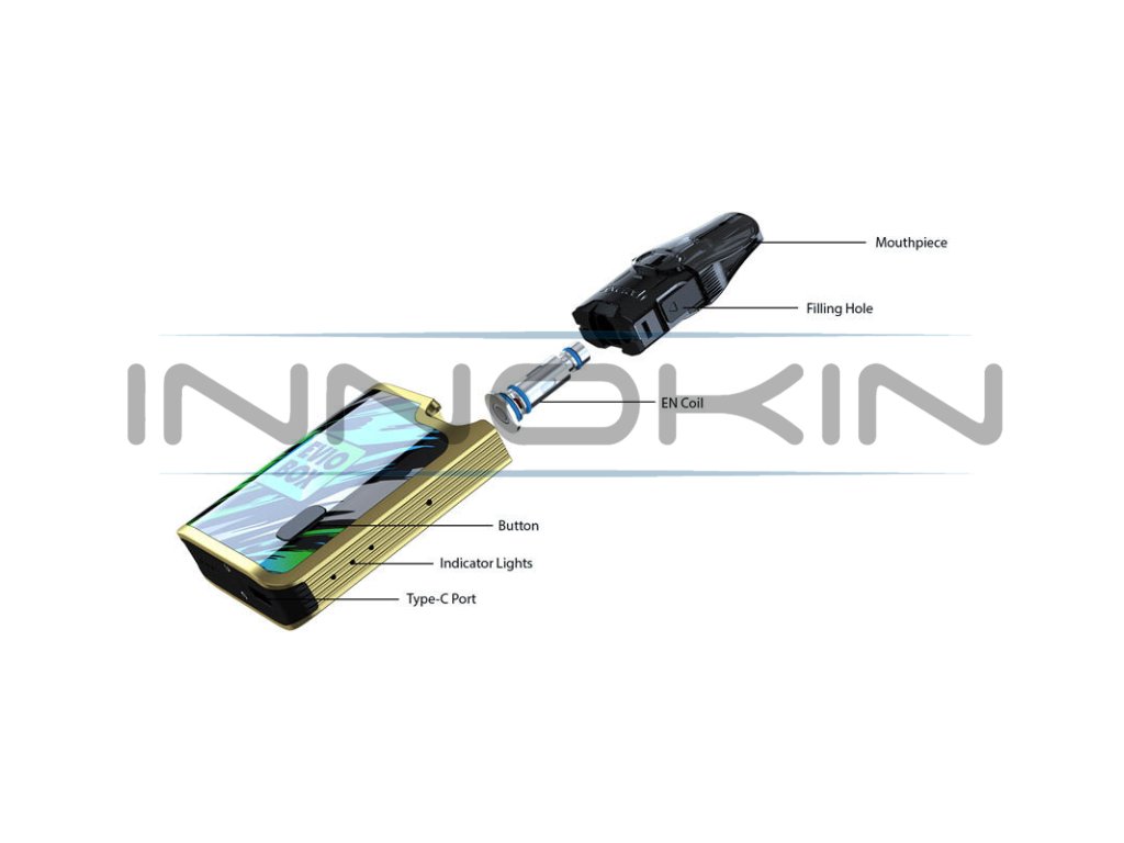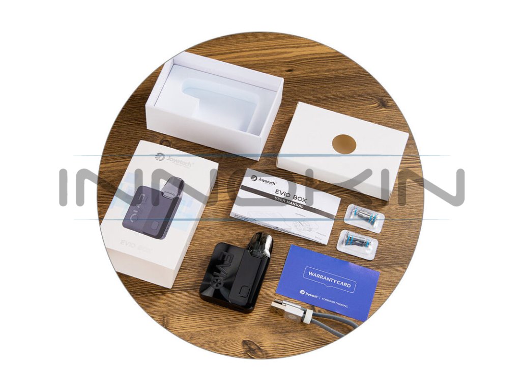 Uvnitř těla najdete mimo baterii také prvotřídní čip s technologií AST pro bleskurychlý náběh žhavení 0,001 vteřiny, dlouhou životnost baterie, nebo pro změnu výstupního režimu. K dispozici jsou hned tři režimy intenzity žhavení. Nesmí chybět ani podpora obou typů potahování. Pro spuštění žhavení tak můžete využít tlačítko na těle e-cigarety, nebo můžete využít automatické spínání pouhým přiložením úst k náustku a potáhnutím. Samozřejmostí je potom automatická detekce připojeného tělíska a řada bezpečnostních prvků. E-cigareta je kompatibilní s tělísky Joyetech EN, v balení se nachází tělísko s odporem 0,8 ohm pro vzdušnější MTL a tělísko s odporem 1,2 ohm pro utaženější šlukování. Joyetech EVIO Box Pod Kit je povedený pod systém, který by neměl chybět ve sbírce žádného milovníka kompaktních e-cigaret pro klasické šlukování.