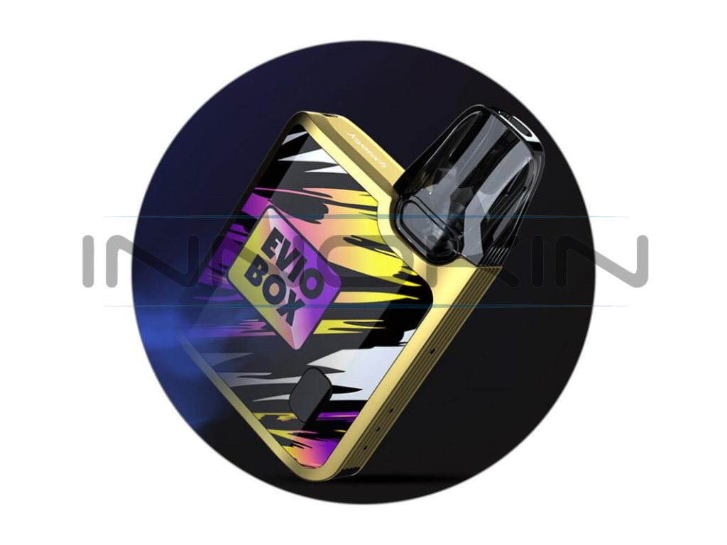 Joyetech EVIO Box Pod Kit je novým přírůstkem do rodiny zařízení EVIO od výrobce Joyetech. Přichází s kompaktním zpracováním, hned dvěma odlišnými konstrukcemi a řadou výhod v čele s prvotřídním čipem s technologií AST. Nesmí chybět také vynikající podání chuti, nebo třeba dvě metody spínání potahu. Joyetech EVIO Box Pod Kit v sobě ukrývá mnohem víc, než se může na první pohled zdát. Celé tělo disponuje rozměry jen 75 x 49 x 14 mm. E-cigaretu proto snadno schováte do kapsy a můžete si ji vzít kamkoliv s sebou. K dispozici je ve verzi ze zinkové slitiny s hmotností 80 g, nebo ve verzi z polykarbonátu s váhou pouhých 41,5 g. Uvnitř těla se nachází integrovaná baterie s kapacitou 1000 mAh, která se postará při běžném provozu až o celodenní výdrž. V případě potřeby je pak možné baterii rychle dobít. Při dobíjení proudem 2 A se zvládne dobít již za 30 minut.