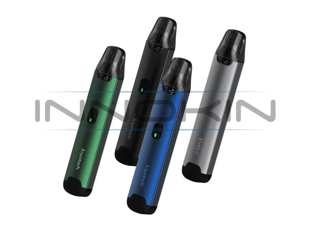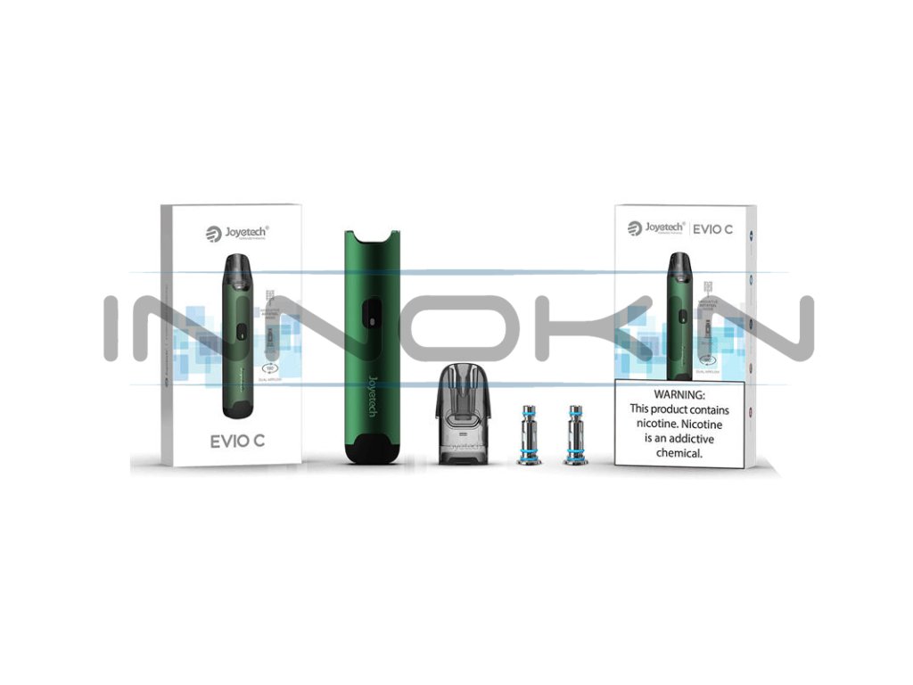 Joyetech EVIO C Pod Kit je jednoduchá elektronická cigareta typu pod, kterou ocení hlavně nenároční uživatelé a začátečníci, kteří se poohlíží po první e-cigaretě pro klasické šlukování (MTL). Nabídne hned několik stylových prvků, díky kterým si vás snadno získá. Kompaktní tělo s rozměry 22,5 x 12,7 x 116,6 mm nabídne perfektní ergonomii pro pohodlné držení v ruce. Výhodou modelu EVIO C je potom přítomnost hned dvou metod spínání potahu. Pro sepnutí žhavení tak můžete využít tlačítko v přední části, nebo automatické spínání pouhým potažením z náustku. V těle se nachází integrovaná baterie s kapacitou 800 mAh. O stavu baterie vás bude neustále informovat LED dioda umístěná přímo ve spínacím tlačítku.