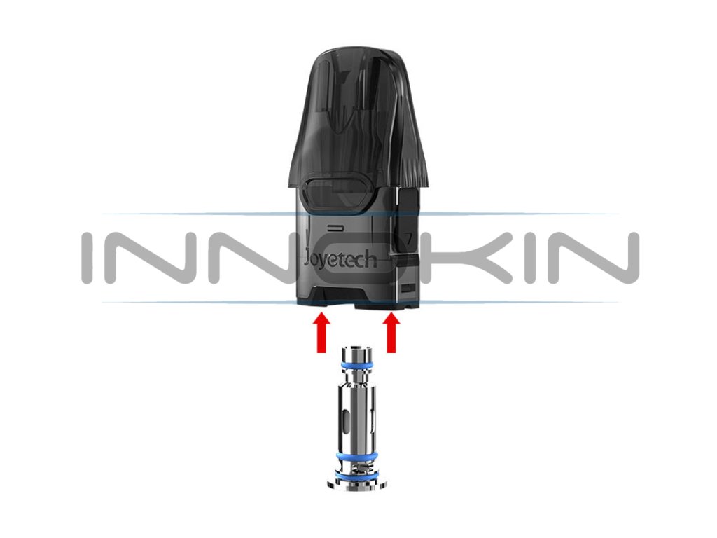 Ve vrchní části se nachází cartridge s objemem 2 ml a praktickým systémem bočního doplňování. Cartridge je kompatibilní se žhavícími tělísky Joyetech EN Mesh. V balení najdete dvě tělíska EN Mesh s odporem 0,8 ohm. Uvnitř těchto tělísek se nachází mesh pletivo pro perfektní chuťové podání při každém potahu. Tělíska nabídnou také příjemnou produkci páry pro klasické šlukování.