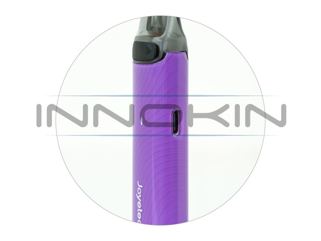 V těle e-cigarety se nachází integrovaná baterie se solidní kapacitou 900mAh, která zajistí hladký chod, rychlý náběh žhavení a dlouhou výdrž na jedno nabití. Jakmile dojde k vybití baterie, bude vás e-cigareta informovat pomocí LED diody na předním panelu. Poté postačí jen připojit USB-C kabel a baterii dobít. Díky podpoře nabíjení 1A se navíc zvládne nabít v krátký čas.