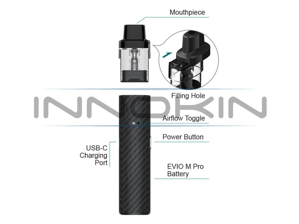 Krásný pod systém Joyetech EVIO M Pro Pod Kit se pyšní elegantně zpracovanou konstrukcí s jedinečným digitálním displejem zapuštěným přímo do konstrukce těla. Díky maximálnímu výstupnímu výkonu 30W s možností regulace si bude skvěle rozumět s rozdílnými odpory cartridgí z platforem EVIO M Pro a EVIO Grip. Pro co nejsnazší používání a pohodlné nastavení uživatelských preferencí je také vybaven praktickým bočním systémem airflow, multifunkčním tlačítkem a výsuvným horním plněním bez nutnosti odpojování cartridge z těla baterie během doplňování. Díky vestavěné baterii s ohromující kapacitou 1100mAh si užijete dlouhé hodiny nerušeného a intenzivního vapování, vše navíc s podporou moderního nabíjení USB-C. Joyetech EVIO M Pro Pod Kit přináší plnohodnotný MTL požitek z vapování a vše potřebné pro každodenní využití.