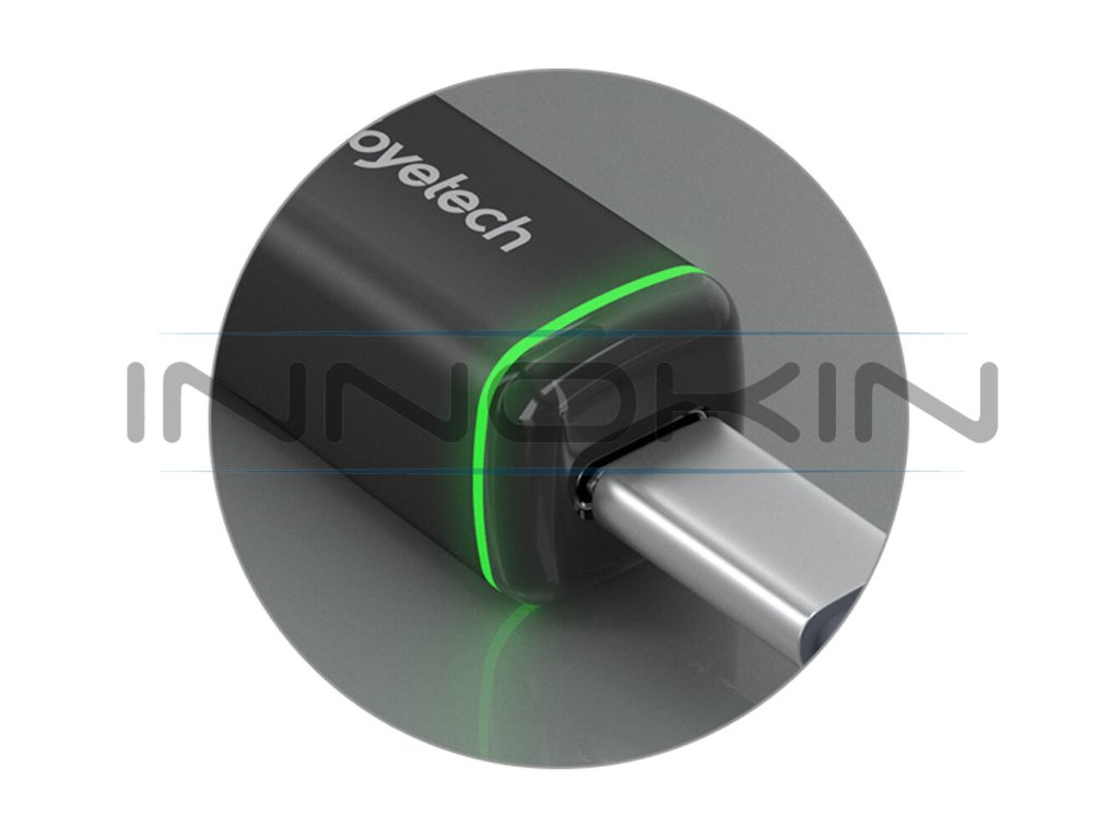 Tělo e-cigarety je možné efektivně dobít hned dvěma způsoby. Tím nejzajímavějším je přítomnost magnetického dobíjecího portu, kdy stačí tělo pouze nasadit do powerbanky a začne se ihned dobíjet. Pokud však nemáte powerbanku zrovna při ruce, můžete pro nabití těla e-cigarety použít také samostatný vlastní USB-C port umístěný ve spodní části. Tímto USB-C portem je pak vybavena také powerbanka. Tělo e-cigarety je možné dobíjet proudem až 1A, integrovanou baterii uvnitř powerbanky si můžete snadno dobít proudem až 2A.