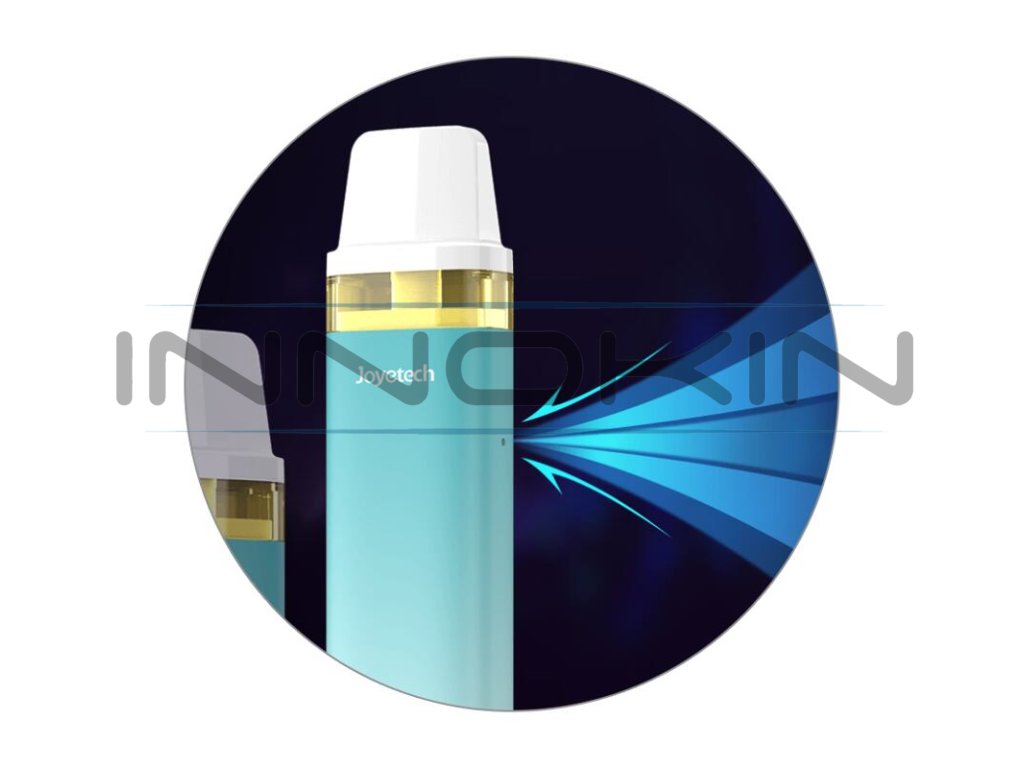 Spínání žhavení probíhá zcela automaticky po potažení z náustku. Na e-cigaretě není potřeba nic složitě nastavovat, jednoduše ji doplníte a můžete začít během pár minut používat. Převratným prvkem je potom cartridge s objemem 2 ml ve vrchní části s technologií WideWickTM. Díky této technologii je lépe a efektivněji nasáván e-liquid ke spirálce. Vata uvnitř tělíska se nasává po celém obvodu a samotná mesh spirálka rovnoměrněji odpařuje e-liquid, výsledná chuť je potom mnohem plnější, prokreslenější a výraznější. Tělísko uvnitř lépe eliminuje možné vyprskávání a zároveň uzamkne napuštěný e-liquid přímo ve vatě, u e-cigarety potom nezáleží, zda bude na stole ležet, nebo zda bude otočená vzhůru nohama, jakmile ji zvednete, abyste si potáhli, bude uvnitř vaty vždy e-liquid. Ten si navíc snadno kdykoliv doplníte po sejmutí náustku cartridge. Joyetech WideWick Pod Kit nabídne více, než se na první pohled může zdát, její praktické funkce vás dokáží zaručeně mile překvapit.