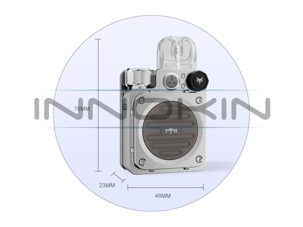 Kumiho THOTH T Pod Kit přináší elegantní spojení netradičního designu a kvalitního pod systému s maximálním důrazem na výraznou chuť e-liquidu. Tělo zařízení připomíná kompaktní retro rádio, celokovová konstrukce je potom nesmírně bytelná a příjemně se drží. Nechte se ohromit integrovanou baterií s kapacitou 1300 mAh a režimem konstantního výstupního napětí pro co nejlepší výsledky při vapování. Poznejte mimořádné chuťové podání díky podpoře platformy náhradních cartridgí Kumiho THOTH a zažijte zcela jedinečný a neopakovatelný zážitek z vapingu.
