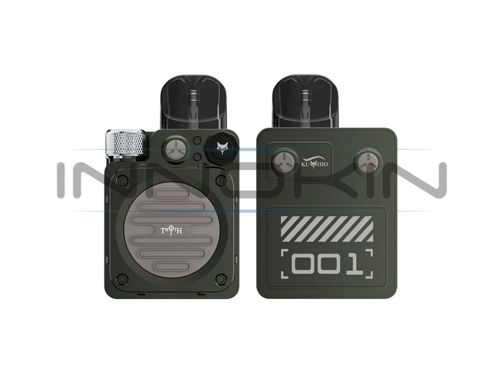 Kumiho THOTH T Pod Kit přináší elegantní spojení netradičního designu a kvalitního pod systému s maximálním důrazem na výraznou chuť e-liquidu. Tělo zařízení připomíná kompaktní retro rádio, celokovová konstrukce je potom nesmírně bytelná a příjemně se drží. Nechte se ohromit integrovanou baterií s kapacitou 1300 mAh a režimem konstantního výstupního napětí pro co nejlepší výsledky při vapování. Poznejte mimořádné chuťové podání díky podpoře platformy náhradních cartridgí Kumiho THOTH a zažijte zcela jedinečný a neopakovatelný zážitek z vapingu.