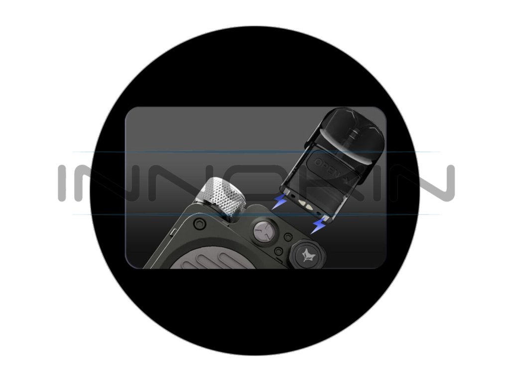 Pro spínání samotného žhavení můžete využít jednu ze dvou dostupných metod. Pokud preferujete konvenční spínání, stačí podržet spínací tlačítko ve vrchní části a začít potahovat. Jestliže však preferujete jednoduchost moderních pod systémů, pro spuštění žhavení vám také postačí jen potáhnout z náustku, žhavení se spustí automaticky bez nutnosti tisknout tlačítko.