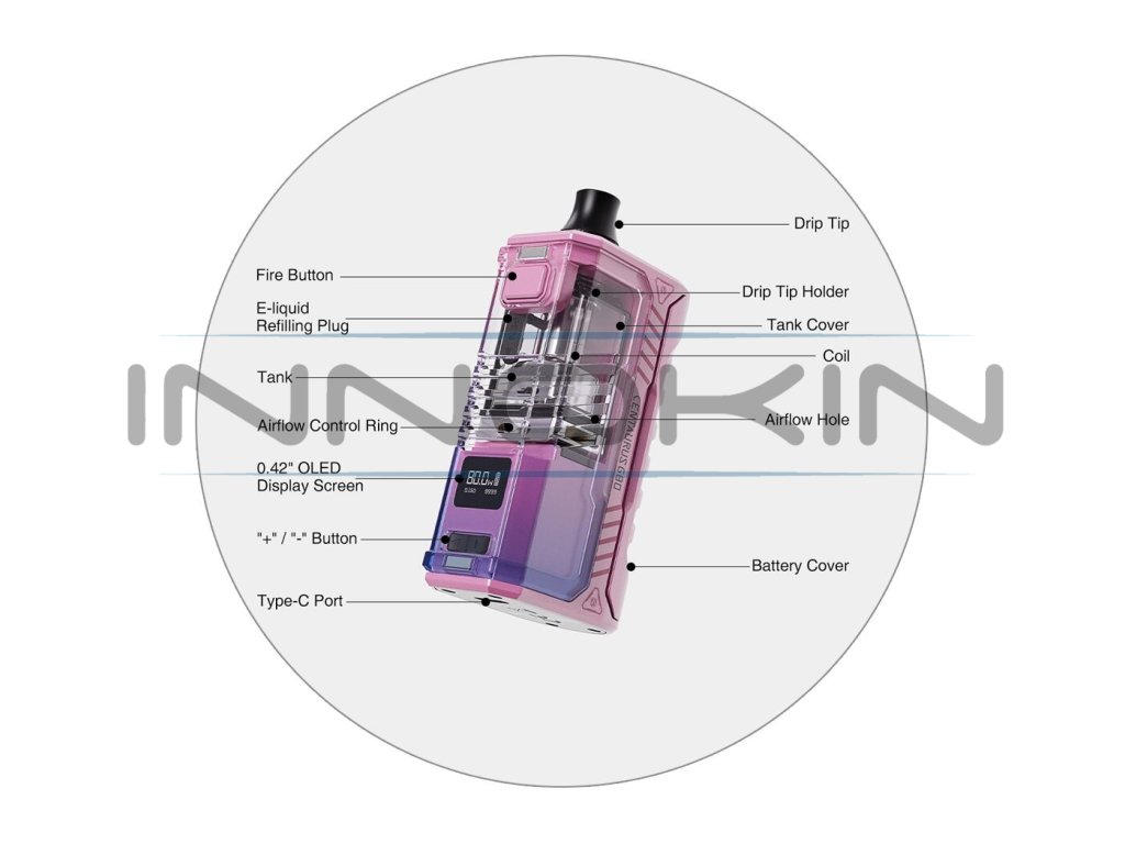 Odklopením zadního panelu modelu G80S objevíte slot pro vložení vlastní externí baterie. E-cigareta pracuje s bateriemi typu 18650, díky čemuž nabídne obrovskou svobodu při výběru vhodného a odpovídajícího článku. Výhodou zařízení je potom nabíjení vaší vlastní baterie přímo v těle zařízení, na těle totiž najdete moderní rozhraní USB-C s dobíjecími hodnotami 5V / 1.85A a s podporou adaptérů až do 2A.