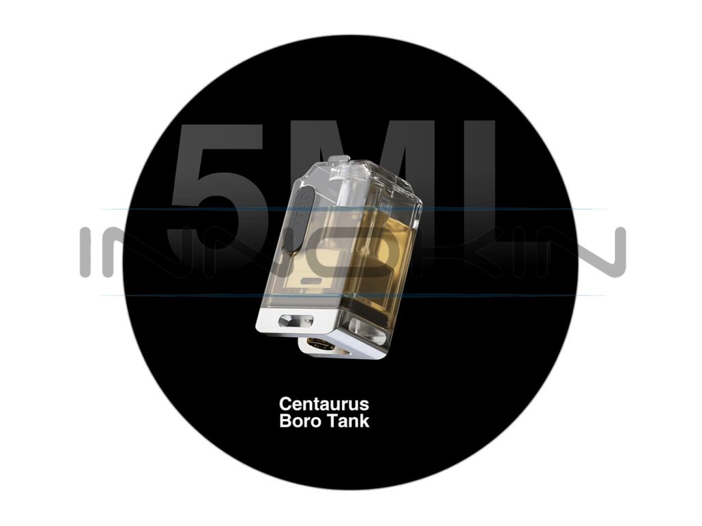 V kompletní sadě nabídne Centaurus G80S oblíbený DIY boro tank Lost Vape Centaurus. Ten umožňuje instalaci vlastní spirálky pro vapování. Díky tomuto boro tanku získáte obrovské možnosti při buildování, vše navíc zvládnete nainstalovat během pár minut. Objem boro tanku činí 5ml a disponuje bočním systémem doplňování, poradí si s intenzivním vapováním bez nutnosti častého plnění.