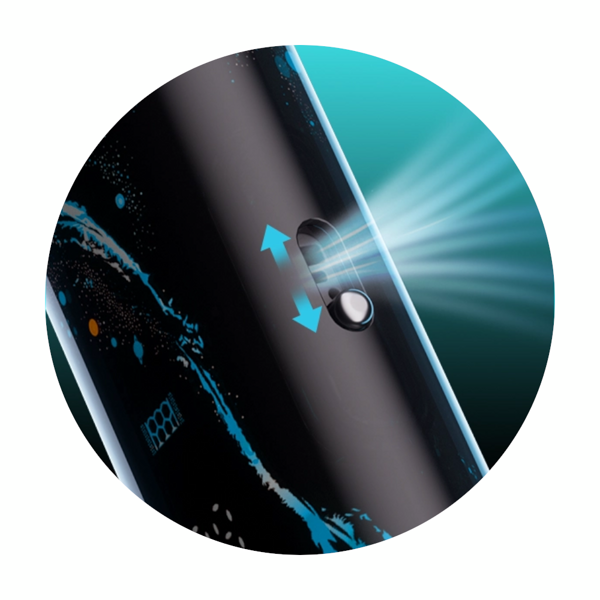 Mějte plnou kontrolu nad e-cigaretou díky jedinému ovládacímu tlačítku, které zastává všechny funkce. Snadno, rychle a intuitivně. Jediný stisk aktivuje displej, trojité poklepání spustí úsporný režim a pět krátkých stisků zařízení zapne či zcela vypne. Jedná se o maximálně jednoduchý a přehledný systém bez zbytečných komplikací.