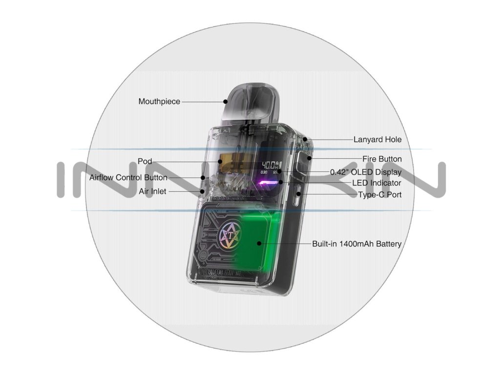 V kompaktním těle modelu Thelema Elite Art 40 se nachází integrovaná baterie s obrovskou kapacitou 1400mAh. Díky velké kapacitě baterie se můžete těšit na dlouhou výdrž a perfektní výsledky při vapování. Baterie se skvěle hodí také pro vzdušnější variace potahu s rychlejším vybíjením, v takovém případě je její kapacita dostačující na mnohahodinové potahování. V případě potřeby si navíc můžete baterii kdykoliv pohodlně dobít prostřednictvím rozhraní USB-C.