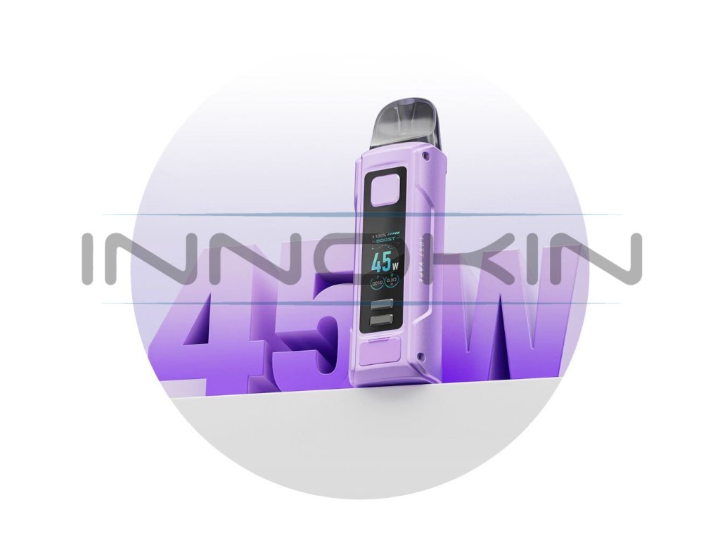 E-cigaretu pohání špičková elektronika umožňující intenzivní vaping s maximálním výkonem až 45 W. Hravě si poradí i se sub-ohmovými Dual Mesh cartridgemi pro tvorbu obrovských hustých mraků. Spolehnout se přitom můžete na inteligentní režim, který automaticky nastaví vhodný výstupní výkon dle odporu připojené cartridge, a zároveň omezí maximální rozsah regulovatelného výkonu, aby nemohlo dojít k jejímu poškození. Pomocí dvou menších tlačítek pod displejem lze výkon jednoduše upravit v daném rozsahu plynule po 1 Wattu.