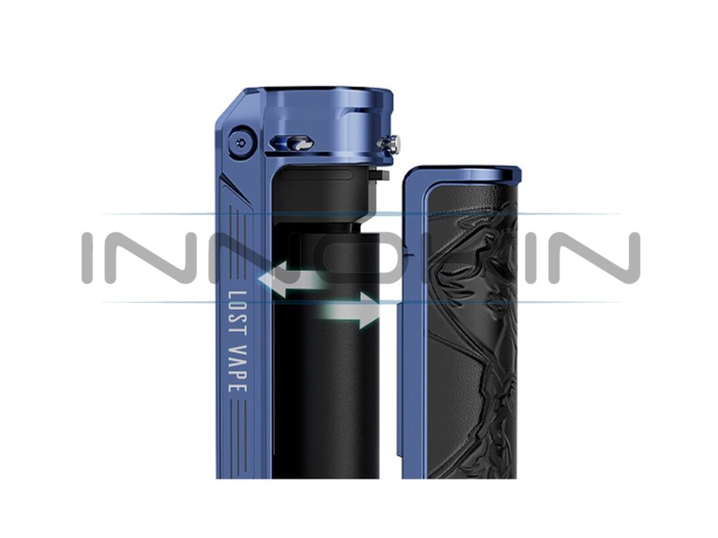 V zadní části na vás čeká magnetický kryt, po jehož odklopení odhalíte slot pro externí baterii. Zařízení pracuje s jednou baterií typu 18650. Díky slotu pro externí baterii si můžete pohodlně zvolit svou oblíbenou baterii a v případě vybití ji například vyjmout, nahradit plně nabitou a vapovat dál. Nesmí chybět ani podpora nabíjení přímo na těle, baterii tak nemusíte pro dobití ani odpojovat, postačí připojit USB-C kabel a můžete nabíjet přímo v těle e-cigarety.
