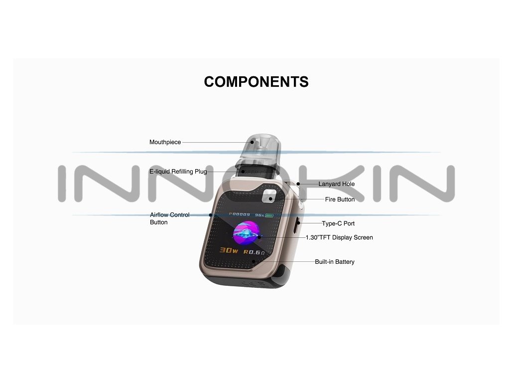 Parametry a specifikaceRozměry: 75 x 47,4 x 17,5 mm Kapacita baterie: 1200mAh (integrovaná) Režimy: regulace výkonu Metody spínání potahu: automatické i manuální Výstupní napětí: 3,0 - 4,2V Výstupní výkon: 5 - 30W (regulovatelný) Podporovaný odpor: 0,5 - 2,0Ω Způsob nabíjení: USB-C port (5V/1A, podpora 2A adaptérů) Regulace výkonu: ano Objem Pod Cartridge: 2ml Styl potahování: MTL / RDL Odpor žhavících hlav: 0,6Ω / 0,8Ω (cartridge v balení) Regulace přívodu vzduchu (Airflow): ano Hmotnost: 53 g Barva: Ash Wood (Hnědá) Materiál: kovová slitina, PCTG |