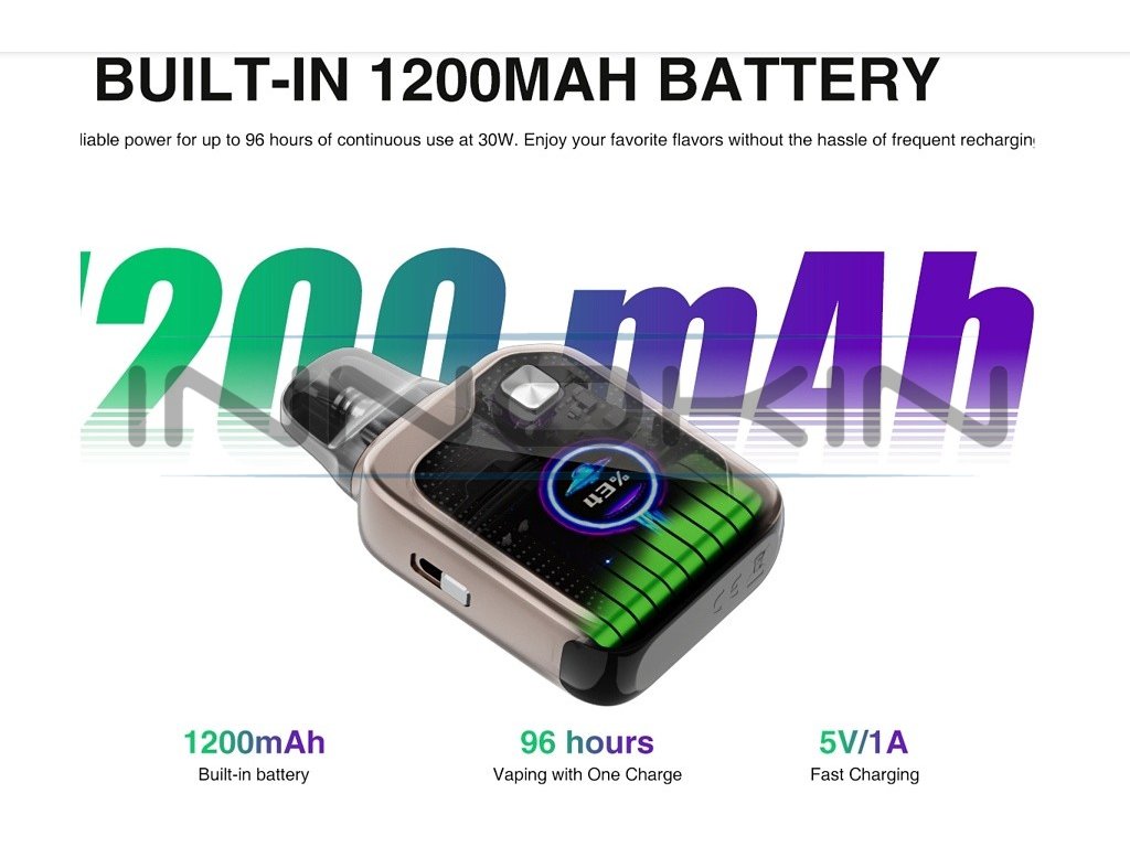 Výkonná baterieIntegrovaná baterie o kapacitě 1200mAh představuje 30procentní nárůst oproti předchozí generaci Ursa Baby 2. Tato výrazná kapacita zajišťuje dlouhé hodiny intenzivního používání bez nutnosti častého dobíjení. Baterie poskytuje stabilní napájení až do vybití a spolehlivě zvládá výkon až 30 wattů pro konzistentní vapovací zážitek během celého dne. |