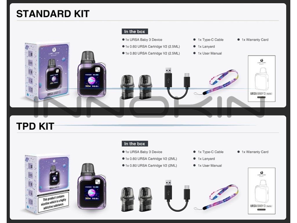 - 1x Tělo Lost Vape Ursa Baby 3 Pod (integrovaná baterie 1200mAh)