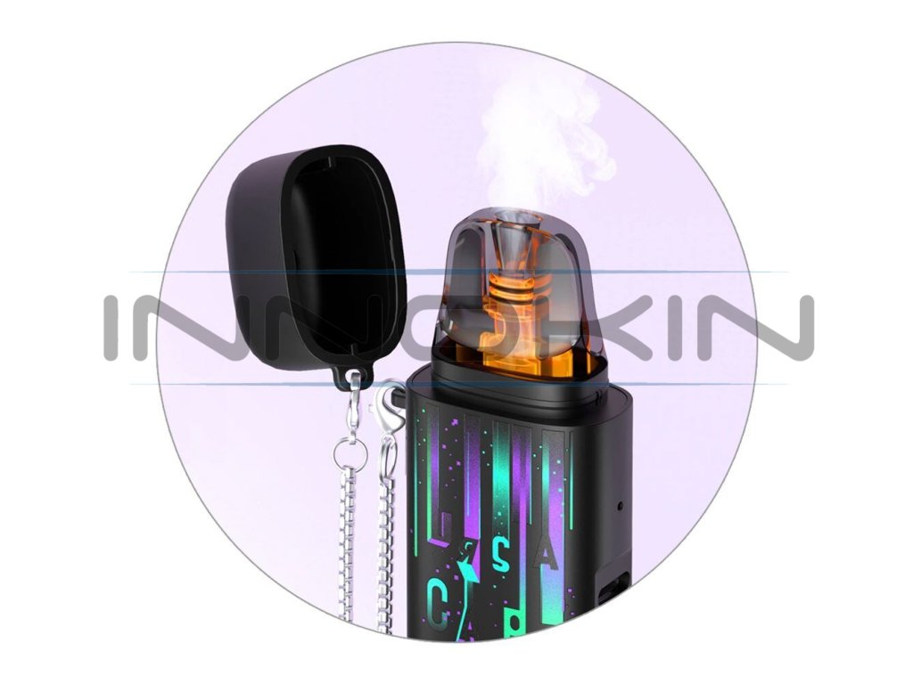 V základním balení najdete také praktický řetízek, kterým lze pohodlně uchytit krytku k tělu e-cigarety, aby se vám neztratila při používání. Pro uchycení řetízku poslouží dvě poutka v boční části. Praktické řešení pro každodenní použití a zároveň také stylový módní doplněk celého zařízení.