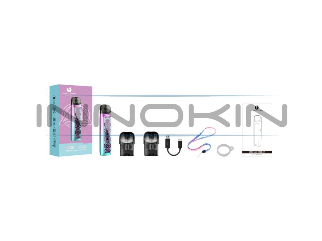 Druhá generace oblíbeného pod systému od výrobce Lost Vape s názvem Ursa Nano 2 Pod Kit se představuje s unikátním a promyšleným designem a s řadou skvělých vlastností pro každodenní využití. Nesmí chybět ani vynikající elektronika, nebo podpora cartridgí z platformy Ursa pro co nejlepší výsledky při vapování. Podlouhlá konstrukce zařízení nabídne praktické rozměry 83,7 x 25,5 x 16,05 mm. Konstrukce ze zinkové slitiny se také může pyšnit nízkou hmotností 85 g. Zadní panel zdobí stylový motiv se zářivými efekty a odlesky při náklonu e-cigarety. Tento motiv je navíc podsvícený a dodává celé e-cigaretě nezaměnitelný vzhled. V jádru se nachází integrovaná baterie s obrovskou kapacitou 900 mAh pro mnohahodinový a intenzivní provoz. V případě potřeby budete moci baterii dobíjet pomocí portu USB-C na těle.