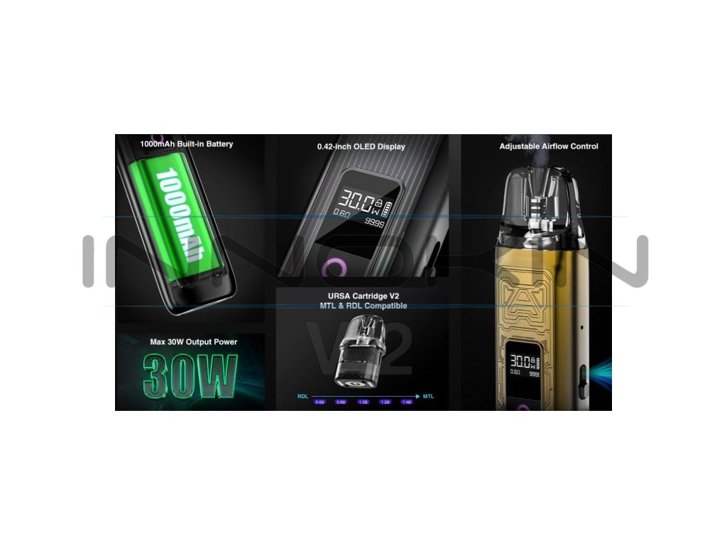 Druhá řada oblíbené elektronické cigarety s POD systémem Ursa Nano Pro 2 od Lost Vape. Kompaktní tělo baterie je vyrobeno z kvalitní zinkové slitiny, obsahuje vestavěný monočlánek o kapacitě 1000mAh a disponuje výkonem až 30W. Postranní airflow je regulován pomocí speciální páčky, která vám umožní si vzduch nastavit přesně podle Vaší chuti. Baterie je vybavena upgradovanými cartrigemi Ursa Nano V2 pro bohatší chuť liquidu s příjemnějším tvarem náustku. Cartridge jsou plně kompatibilní s předešlou řadou. Nabíjení obstarává USB-C port.