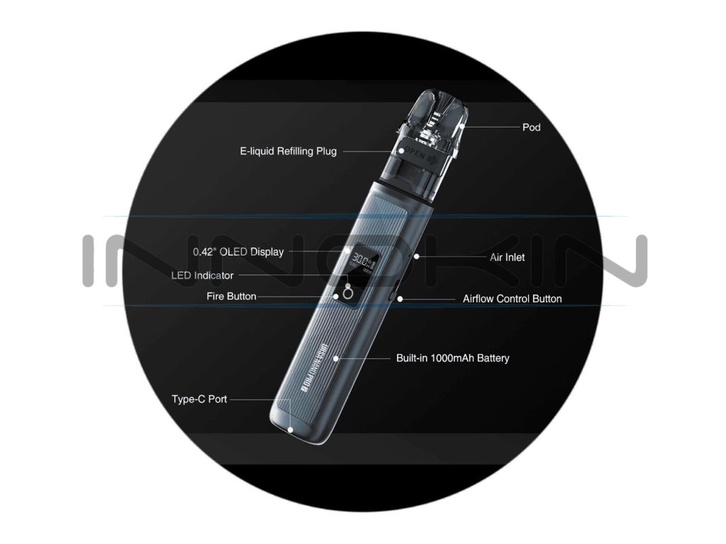 Malý, ale praktický. Přední panel zdobí krásný OLED displej s přehledným uživatelským rozhraním. Díky modernímu čipsetu Quest 2.0 je užívání modelu snadné, intuitivní a praktické. Na displeji budete mít neustálý přehled o stavu baterie, nastaveném výkonu, nebo odporu cartridge, či o počtu potahů, které již máte za sebou.
