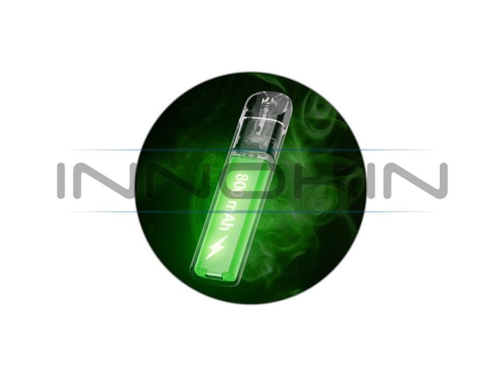 Přímo v těle zařízení se nachází integrovaná baterie s velkou kapacitou. Ta činí krásných 800 mAh, zařízení tak zvládne intenzivní mnohahodinový provoz a dlouhou výdrž na jedno nabití. V případě úplného vybití vás potěší přítomnost rychlého portu USB-C ve spodní části, e-cigareta podporuje nabíjení proudem až 2A, zvládne se tak dobít za velmi krátkou dobu.