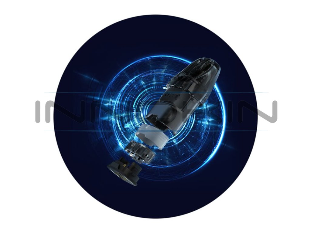 V případě nutnosti dobití baterie vás bude o této skutečnosti informovat LED dioda umístěná ve spodní části. Pokud bude potřeba baterii dobít, jednoduše připojíte USB-C kabel z balení a pohodlně ji dobijete. Zařízení rovněž disponuje inteligentní indikační diodou, která vás informuje o aktuálním stavu nabití baterie a v případě plného nabití se rozsvítí zeleně a zůstane svítit.