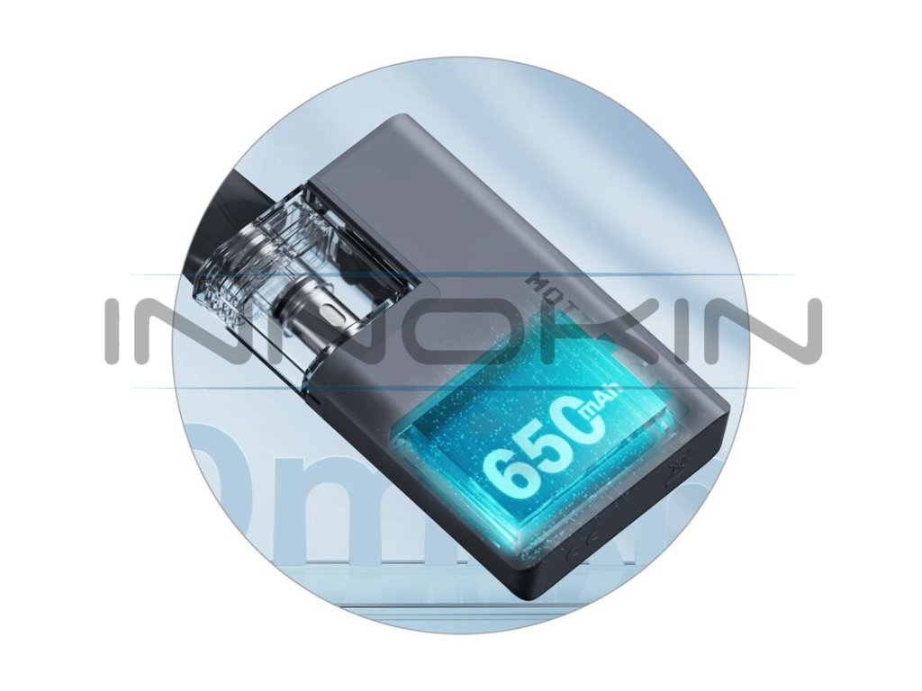 V těle e-cigarety MOTI Play Mini se ukrývá integrovaná baterie se solidní kapacitou 650 mAh, která se postará o hladký a bezproblémový chod, stabilní výstupní výkon a skvělou životnost. Díky integrované baterii v těle zvládne e-cigareta také intenzivnější mnohahodinový vaping. V případě nutnosti ji budete moci kdykoliv opětovně dobít pomocí portu USB-C na těle. Lze dobíjet proudem 0.5A.