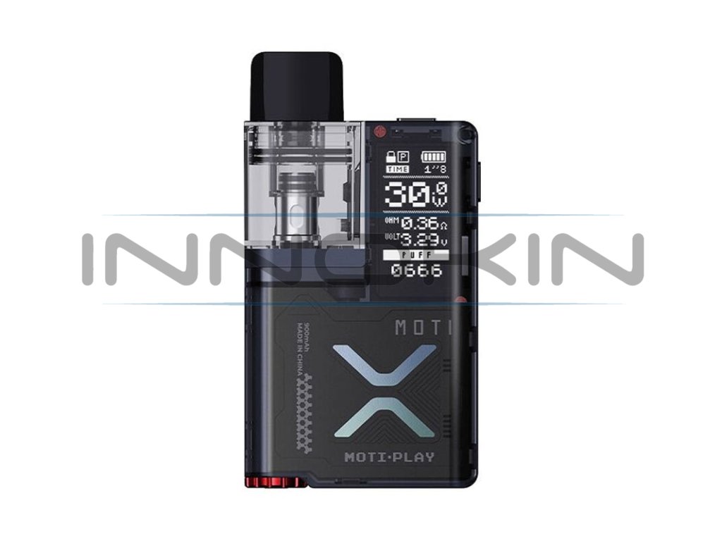 Moti Play Pod Kit je elegantně zpracovaná e-cigareta s futuristickým vzezřením. Zpracování modelu bylo oceněno také světovou cenou designu Muse Design Awards. Čeká na vás tělo vyrobené z kombinace zinkové slitiny a polykarbonátu. E-cigareta je k dostání také v řadě barevných variant s odlišnou barvou konstrukce a samotného loga modelu umístěného v boční části.