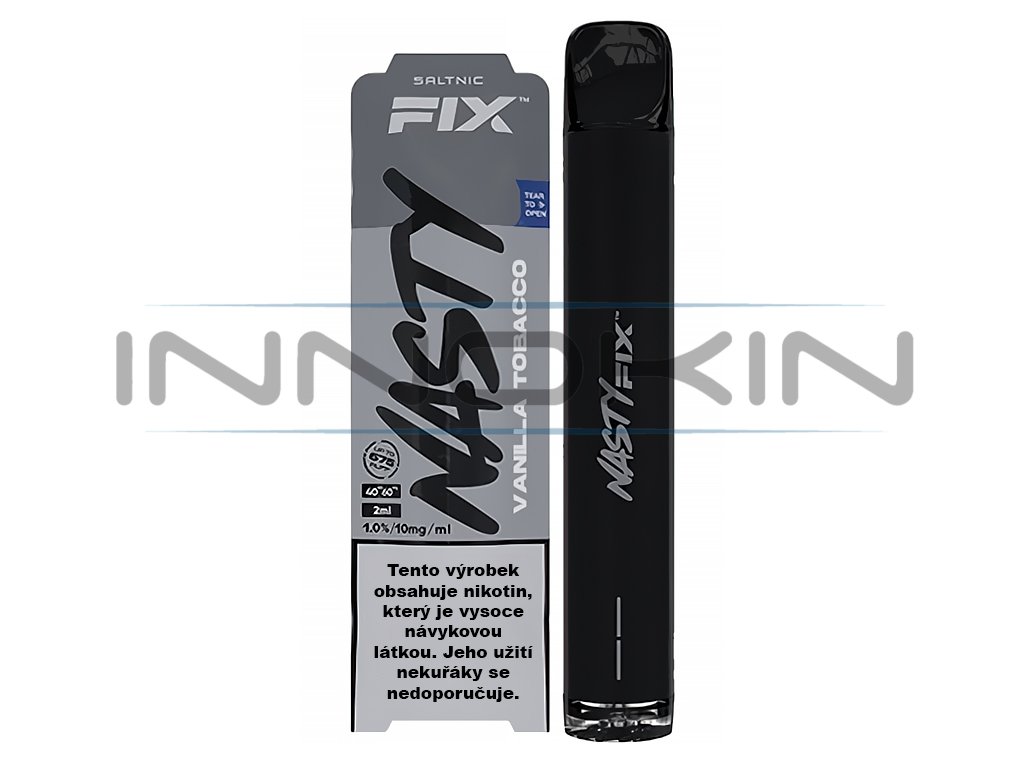 Prověřená chuť vanilky s tím nejjemnějším prvotřídním tabákem. Nasty Juice Air Fix je jednorázová elektronická cigareta obsahující 2 ml předplněného e-liquidu uvedené příchutě. Obsahuje nikotinovou sůl, která se rychleji vstřebává do těla a není tak nutné časté potahovaní, jako je tomu klasických liquidů. Cigareta je napájena vestavěnou baterií o kapacitě 700 mAh, se kterou dosáhnete až 675 potažení. Spodní část zařízení disponuje regulací přívodu vzduchu pro optimální nastavení kouřivosti. Jde o ideální řešení pro kuřáky, kteří potřebují jednorázově překlenout pobyt v nekuřáckém prostředí. Obsah nikotinu 10mg/1ml.