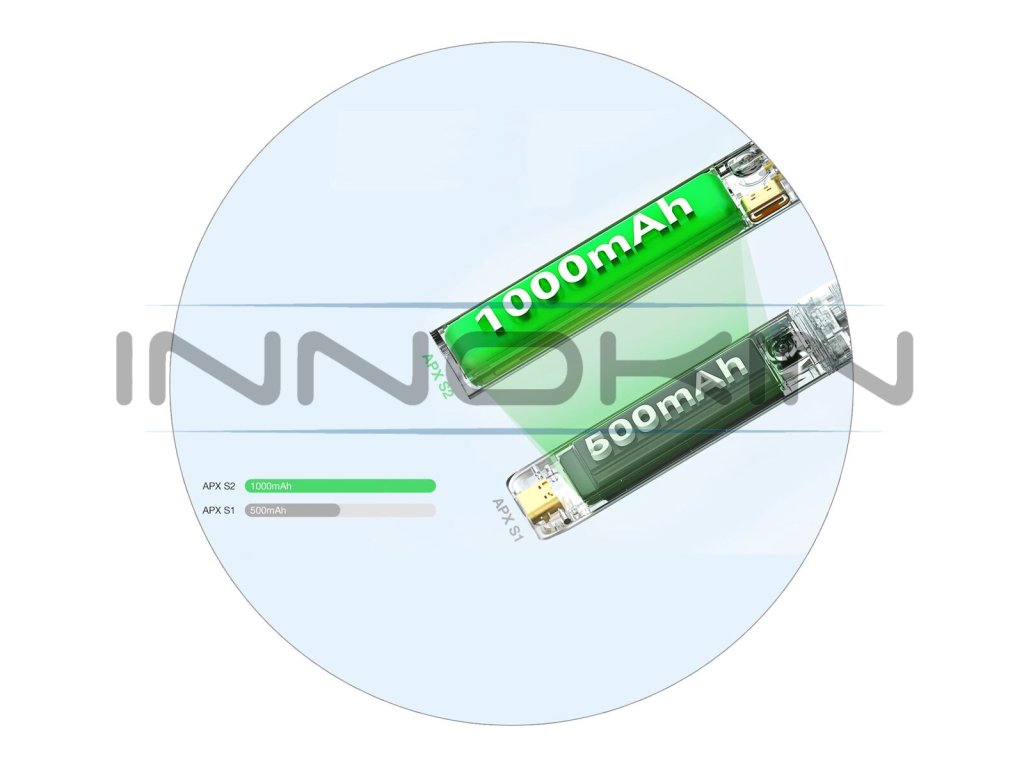 Značný skok nastal u modelu APX S2 v případě samotné integrované baterie. Tělo je totiž osazeno baterií o kapacitě 1000mAh, těšit se tak můžete až na dvojnásobnou výdrž proti první verzi APX S1, kde byla kapacita poloviční. Větší kapacita přináší širší možnosti a zároveň se postará o to, že nebudete muset baterii tak často dobíjet a budete si moci užívat více času stráveného potahováním. V případě potřeby si pak budete moci baterii kdykoliv dobít prostřednictvím rozhraní USB-C s podporou 1A nabíjení.