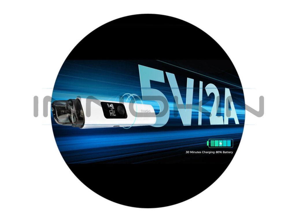 I přes obrovskou kapacitu integrované baterie bude nutné ji jednou za čas dobít. Pro tyto účely vybavil výrobce svůj model Feelin AX moderním rozhraním USB-C s podporou nabíjení proudem až 2A. Na 80% kapacity tak zvládnete baterii dobít už za krásných 30 minut. Podpora rychlého nabíjení jen podtrhuje celkovou kvalitu zpracování této e-cigarety a umocňuje bohatou nabídku skvělých funkcí.