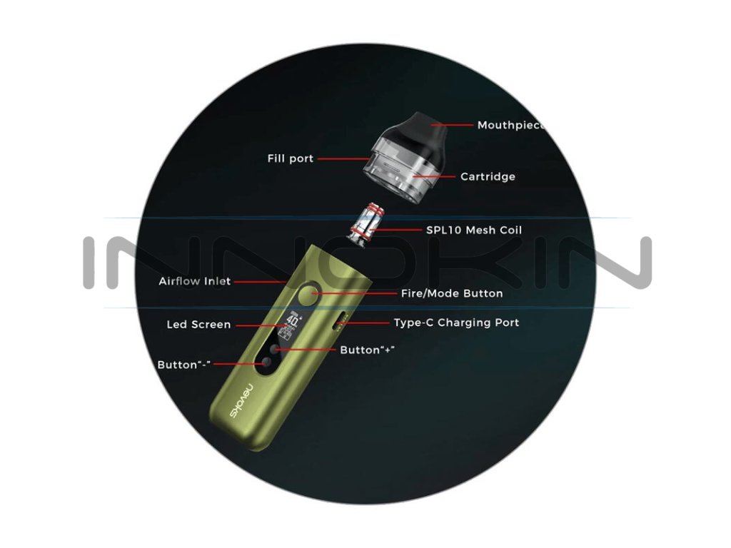 Pod futuristickým názvem Nevoks Feelin X Pod Kit se ukrývá inovativní a pokročilý pod systém, který si hravě poradí se všemi typy vapování, jako bonus dodá také možnost regulace výkonu, regulace přívodu vzduchu, displej a přehledné rozhraní, nebo podporu všech žhavících hlav z platformy Nevoks SPL 10. Elegantně zpracovaný pod systém Feelin X nabídne praktické rozměry těla 109 x 30.6 x 20 mm a zaoblené hrany pro co nejpohodlnější používání. Klíčovou výhodou modelu je přítomnost integrované baterie v těle, ta se pyšní kapacitou 1600 mAh a dodá celému zařízení dlouhou výdrž na jedno nabití a zároveň umožní používat vysoký výstupní výkon až do hodnoty 40 W. Výkon je plně regulovatelný, o všech nastavených a naměřených parametrech budete mít neustálý přehled na displeji v přední části.