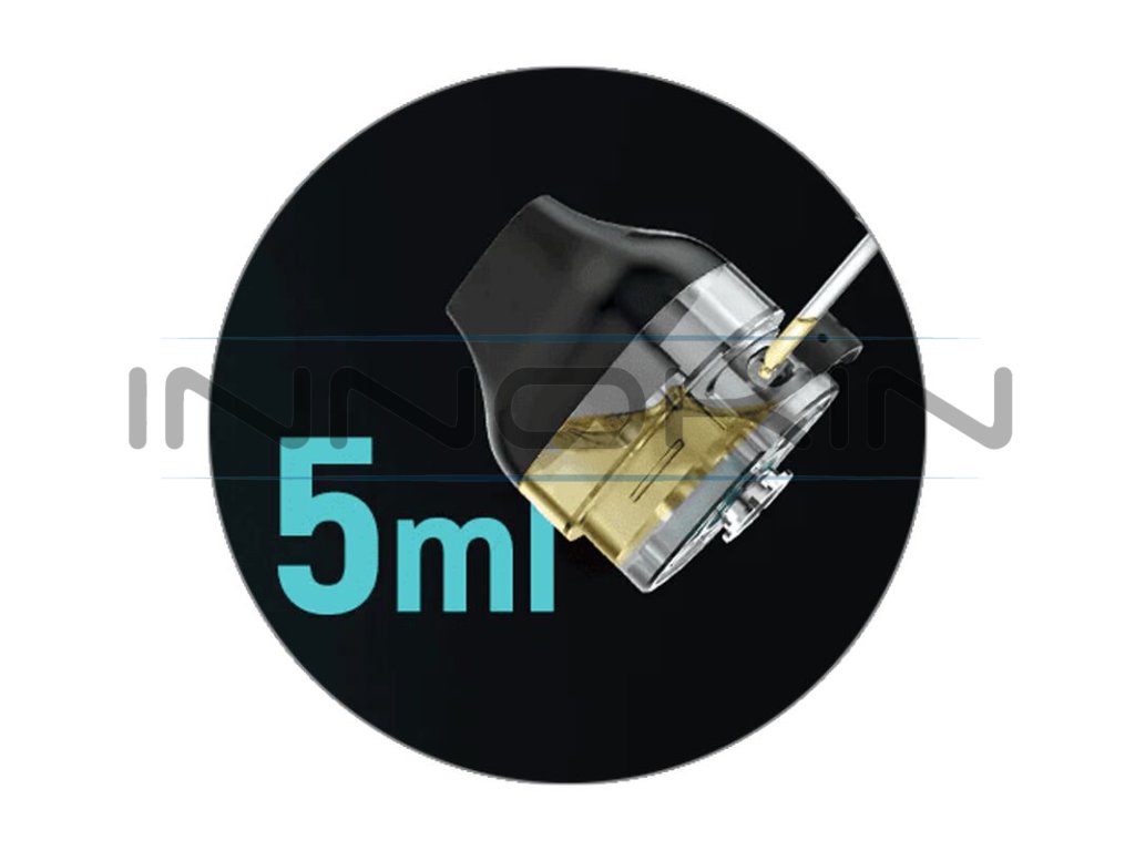 Ve vrchní části modelu Nevoks Feelin X na vás čeká cartridge s obrovskou kapacitou 5 ml a pohodlným bočním plněním. Díky této ohromující kapacitě se nemusíte obávat častého doplňování, na jedno naplnění zvládne e-cigareta mnohahodinový intenzivní provoz. Větší kapacitu ocení zejména příznivci volnějších forem vapingu, či milovníci DL.