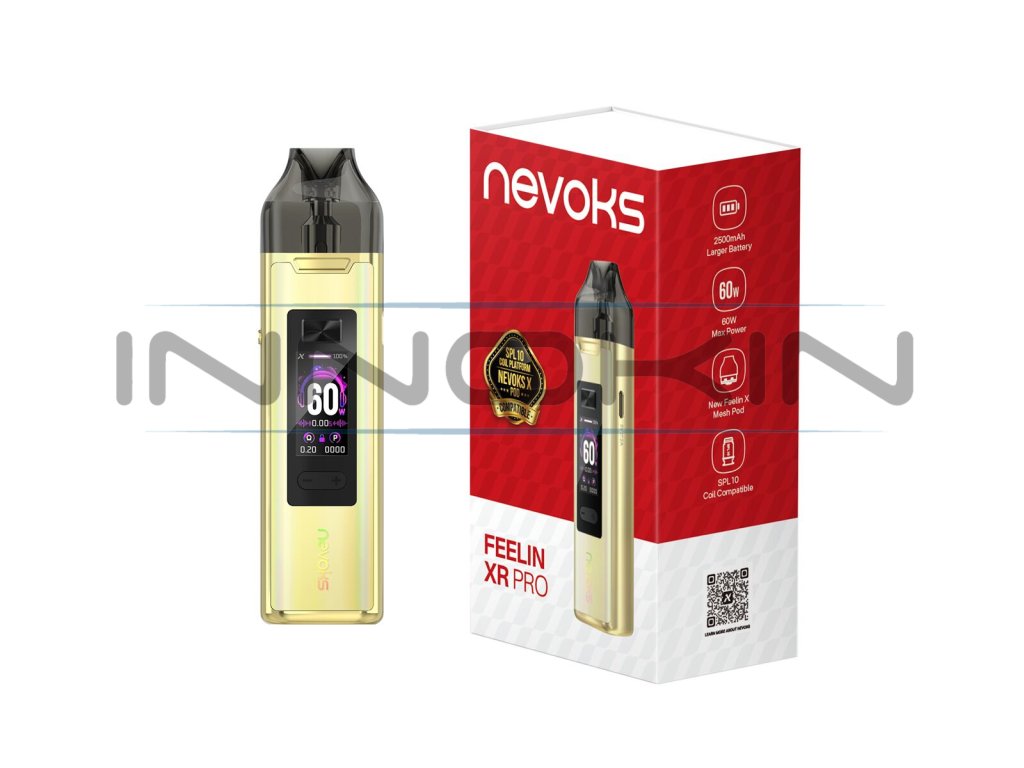 Se strhujícím výkonem až 60W a podporou nových cartridgí s integrovanou hlavou pro DL potah představuje nový Nevoks Feelin XR Pro Pod Kit další milník v sérii oblíbených pod systémů Feelin. Model s krásně zpracovanou kovovou konstrukcí je vybaven integrovanou baterií o kapacitě 2500mAh a celobarevným velkým TFT displejem pro uspokojující požitek z vapování. Jako bonus přináší také kompatibilitu s prázdnými cartridgemi Feelin X a žhavícími hlavami SPL 10 pro ještě větší variabilitu při výběru vhodné součásti a stylu potahu. Bohatě vybavený pod systém potěší milovníky všech stylů vapování v jednom jediném těle.
