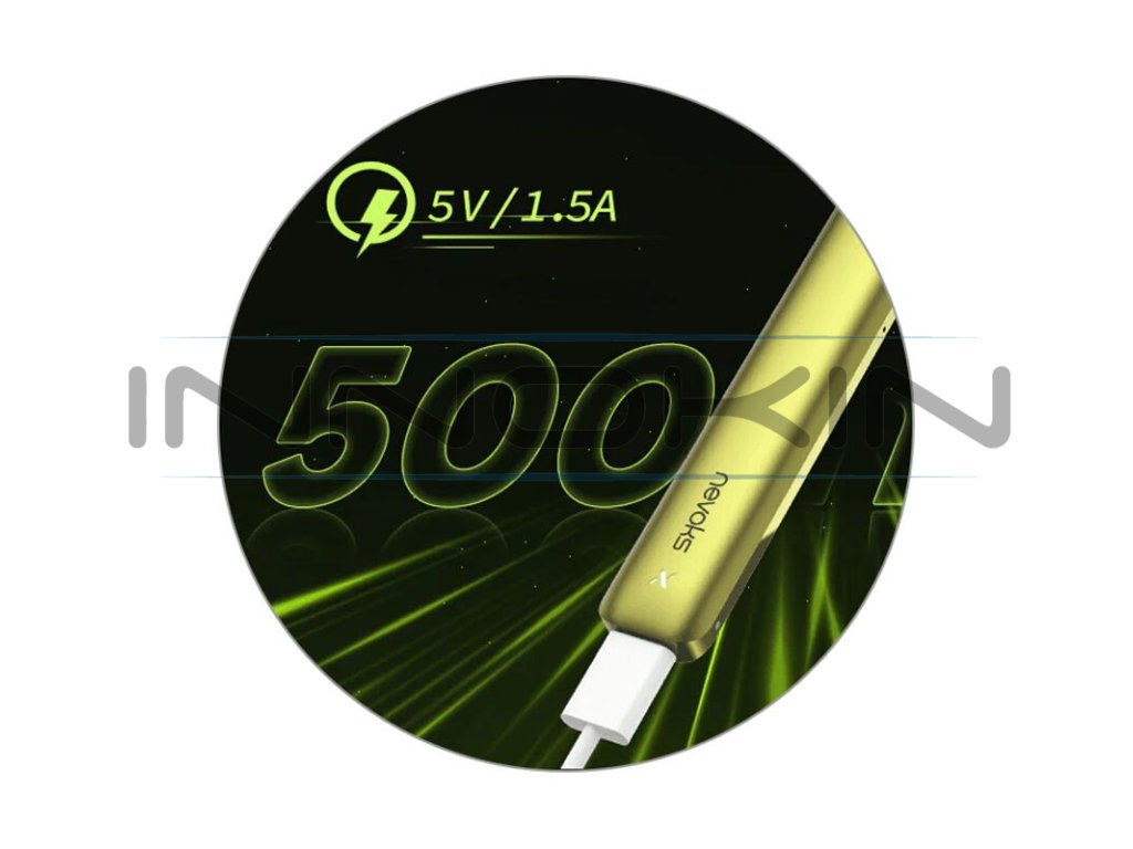 V těle e-cigarety se nachází integrovaná baterie se solidní kapacitou 500 mAh pro hladký chod a mnohahodinové používání bez nutnosti dalšího dobíjení. V případě potřeby nabití vás jistě potěší přítomnost moderního dobíjecího rozhraní USB-C.