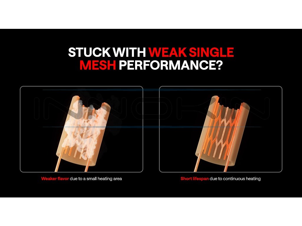 Žhavící hlavy Pod Cartridge obsahuje dvě mesh spirálky z Kanthal materiálu, které se v režimu ECO střídají pro delší životnost. V režimu BOOST žhaví současně pro plnější chuť a větší tvorbu páry, což umožňuje přizpůsobit si styl vapování dle nálady a preferencí uživatele. |