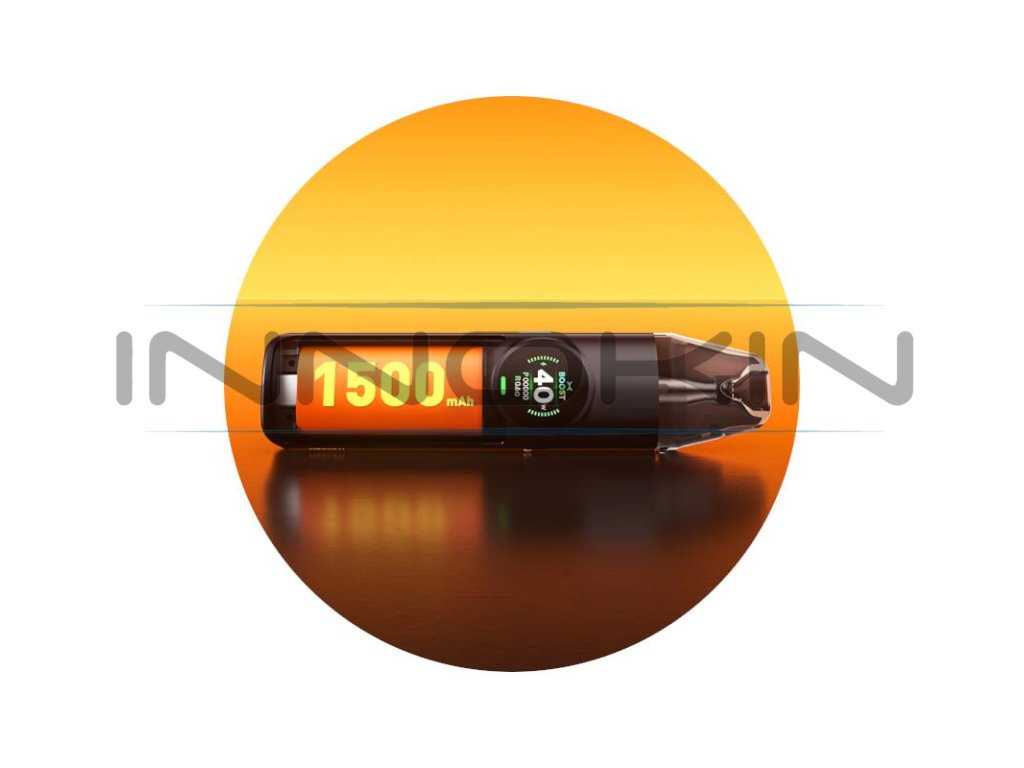 Zabudovaná baterie disponuje nadstandardní kapacitou 1500 mAh, která vám zajistí bezstarostné celodenní vapování. Navíc podporuje rychlé nabíjení vysokým nabíjecím proudem až 2A přes moderní rozhraní USB-C. Na 80 % kapacity baterie se tak stihne nabít již během pouhých 30 minut.