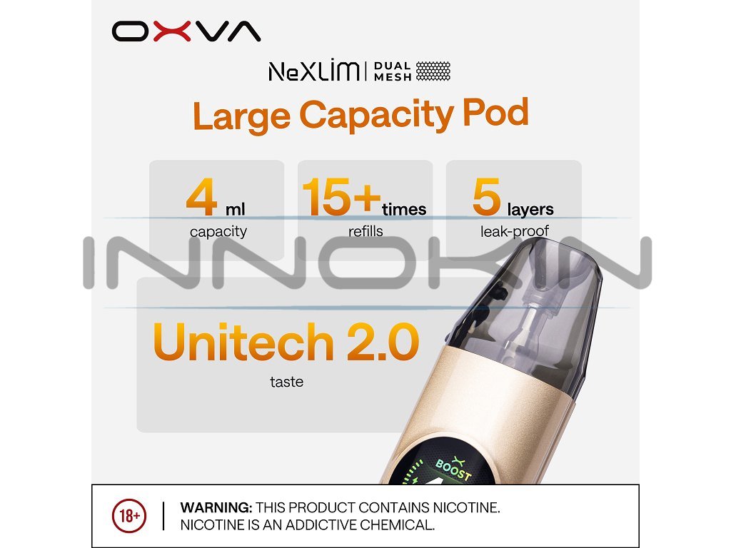 Moderní technologieOXVA NeXLIM představuje vrchol v oblasti Pod systémů s pokročilou Dual Mesh technologií, velkým OLED displejem a výkonnou baterií. Díky dvěma režimům výkonu, nastavitelnému airflow a různým typům Pod Cartridge si každý uživatel může přizpůsobit zařízení přesně podle svých preferencí pro ideální vapovací zážitek. |