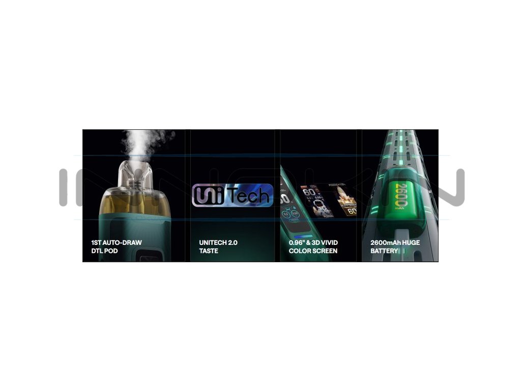 Není určeno pro náplně obsahující nikotin! Nejpopulárnější výrobce elektronických cigaret OXVA představuje VPRIME Kit, první systém DL s automatickým spínáním potahu a ultra realistickým celobarevným displejem. V dokonale zpracovaném těle baterie se nachází vestavěný monočlánek o kapacitě 2600mAh s výstupním výkonem až 60W. Nové stejnojmenné cartridge o objemu 5ml disponují technologií Unitech 2.0, které jsou navrženy pro dokonalou chuť při každém potahu a možnost vapování všemi oblíbenými styly - DL, RDL a MTL.