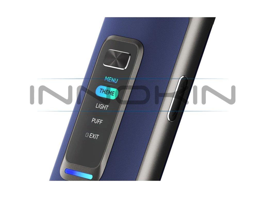 Přední panel zdobí mohutný celobarevný displej, který vás bude během používání neustále informovat o všech parametrech a aktuálním stavu baterie. Všechny položky jsou krásně čitelné a jedním pohledem si vždy snadno ověříte, jaký máte nastavený výkon, jaký je odpor cartridge, kolik máte odvapováno potahů nebo zda není e-cigareta uzamčená. Vše potom doplní krásné barevné animace zobrazené na displeji během potahu pro vizuální požitek při vapování.