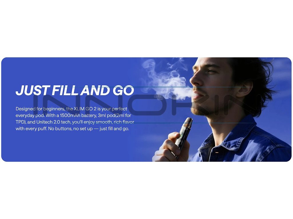 Hlavní předností OXVA Xlim GO 2 je její uživatelská přívětivost kombinovaná s pokročilými technologiemi. Zařízení disponuje inteligentním automatickým nastavením výkonu podle připojené cartridge, takže se nemusíte zabývat složitými nastaveními. Stačí připojit naplněnou cartridge a můžete okamžitě začít vapovat. Indikační LED dioda ve tvaru písmene X s efektním hvězdným rámováním nejen krásně doplňuje design, ale také přehledně informuje o stavu baterie třemi různými barvami. Kompatibilita s celou rodinou cartridgí Xlim V2, V3 a EZ poskytuje široké možnosti přizpůsobení podle vašich preferencí. Vylepšená technologie UniTech 2.0 nejen zvyšuje intenzitu chuti, ale také prodlužuje životnost cartridgí o 30%. Robustní baterie 1500 mAh poskytuje dlouhou výdrž i při intenzivním používání s nízkoodporovými cartridgemi. Elegantní IML povrchová úprava zajišťuje příjemný hmat a odolnost proti opotřebení. Tento pod systém je ideální volbou pro začátečníky i pokročilé vapery, kteří hledají spolehlivé a výkonné zařízení s minimální údržbou a maximálním komfortem používání.